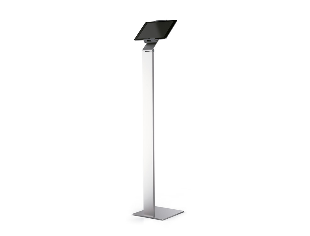 Este atril de suelo es una solución práctica y elegante para la presentación de información en diversos entornos profesionales. Diseñado con un marco de aluminio robusto y acabado anodizado en plata, este soporte informativo es ideal para exhibir documentos en formato DIN A4. Su estructura garantiza estabilidad y flexibilidad, permitiendo ajustar el ángulo de lectura, la altura, y la orientación del contenido.